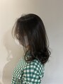 透明感たっぷりのダークアッシュで赤みを消しています。カットは顔まわりにレイヤーをいれて、毛先ワンカールだけで動きが出るようにカットしています。