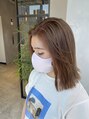 ダブルカラー1回で作るミルクティーグレージュです!カットは切りっぱなしのライン感を残したスタイルでストレート気味の外ハネがおしゃれポイントです!気軽にご相談ください!