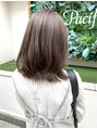 柔らかい透明感カラーです!!赤みを消したミントのアッシュと上品なベージュのミックスカラーです。夏のファッションにもぴったりなのでぜひヘアチェンジお任せ下さい!!