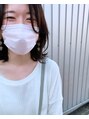 切りっぱなしボブのラインを残しながら、表面の毛は短めに☆すると、動きのある可愛い外ハネボブになります♪カラーは赤みを抑えたマットグレージュです。