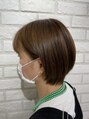 首が長く綺麗に見えるショートボブスタイルです。アクセサリー類もより見せることができます。ベージュ系カラーとの相性も抜群です!
