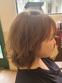 パーマスタイルです。アウトラインをハネさせながら、トップミドルはふんわり出るように巻いてあります!軽い質感とトップのふんわり感を出したいかたにオススメ