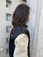 肩に当たるボブ(ミディアム)に顔まわりと表面にレイヤーをいれ、無造作、ラフ、自然な毛流れがかっこいいスタイルです。レイヤーが入ってるところを軽く巻いてかきあげただけで外国人のような顔まわりの毛流れができます。
