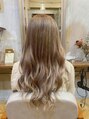 落ち着いた雰囲気のあるグレージュカラーです。ブリーチ毛を活かしたグレージュに、少し明るめのエクステでグラデーションにしています。ハイトーンスタイルでエクステをつける場合は、色落ちを計算してグラデーションにすると長持ちします。