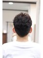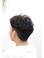 ツーブロックスタイルです。前回より少し強めにパーマかけました。前髪も前回はピンパーマで流れをつけたんですが、今回はリバースパーマで『かきあげる』感じにパーマをかけました。スッキリしてカッコいい感じになりました。