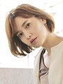 毛先ワンカールパーマをかけたAラインボブ。前髪は長めでおろしても、かき上げヘアにしてもOK。カラーは11トーンのへーゼルベージュで夏っぽく仕上げています。
