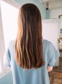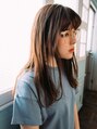 毛先に重さを残したロングスタイル。バングは眉のラインで切り揃えてややパッツンぎみに。強めに巻けば眉上バングになる2WAYになっています。全体的に重ためのスタイルですが、トップと顔周りに少しだけレイヤーをいれているます!