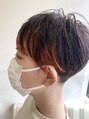 刈り上げマッシュショートスタイルに、ポイントでフロント部分をブリーチした後に、オレンジをオンカラーしました!ショートスタイルにフロントのポイントカラーがアクセントになります!