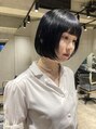 顔まわりにレイヤーを入れたミニボブスタイル。ワンブリーチにブルーブラックのカラーリングでモードな印象に。扱いやすいボブスタイルに顔まわりのレイヤーで普通っぽくならないようにヘアスタイルを作り込んでいます