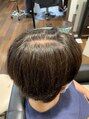 ずっと白髪をしっかり染めて、暗めになってしまったのを白髪ぼかしのハイライトで明るくしていきます!極細のハイライトをてんこ盛りにして、全体的に明るさを出していきます!1回目でここまで明るくできました。