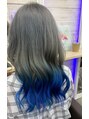 インナーと表面の毛先をブルーにして表面はグレーにして夏先取りスタイル☆【新宿】【エクステ】【編み込みエクステ】【シールエクステ】【髪質改善】