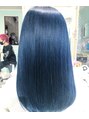 アディクシーカラーを使ったブルーサファイア。元々のブリーチを生かして濃いめのブルーに仕上げました。