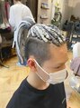 サイド、バックを刈り上げたメンズブレイズです。ホワイトとシルバーのエクステをミックスして結んでもおろしてもかっこいいスタイルになっています!