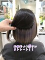 インナーカラーで内側だけブリーチしてるのかと思いきや、全体をブリーチしてカラーの明暗でインナーカラーにしていたお客様。髪が劇的に傷みやすい感じでしたので、普段はあまり使わない酸性系の薬剤で縮毛矯正を。いい感じのサラサラヘアーに、なりました。
