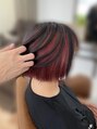 「ブリーチなしダブルカラー レッド スタイル ボブ」
