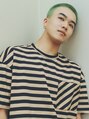 フランクオーシャンのアルバム(blond)のジャケットみたいなライムグリーンのバズカット[坊主]ヘア。骨格にあわせて微妙に長さをかえているので単調になりません!1ブリーチは必須のカラーです。
