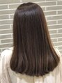 イルミナカラーのスターダストのアッシュグレージュ。あご下のボブスタイルで内巻きも外ハネも◎