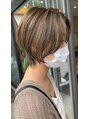 襟足をスッと残したショートボブ。丸みと長めの襟足が可愛いです^^カラーは明るめのグレージュ。