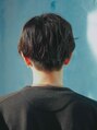 襟足は柔らかく刈り上げて、前下がりにパツっと切ったトレンドのメンズスタイルです。量感調節をしっかりすればスタイリングもとてもラクで、カジュアルにもフォーマルにも似合います。緩くパーマをかけて抜け感を出しました。