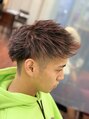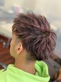 ジェットモヒカン仕様でカット。アイロンなしでもしっかり形と束感が再現でき、質感も柔らかくセットしやすくしました。全体にメッシュいれて、その後ピンクを重ねて、立体感と人とは被らないカッコよさを表現しました。色落ち後は通常のメッシュに戻ります。