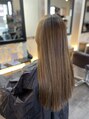 ブリーチなしカラー/髪質改善/ミルクティーベージュ/小顔ヘア