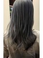 17レベル以上のベースに薄い青を入れた今流行りのペールカラー 。毛先を軽い質感にし、夏色カラーで涼しげに。