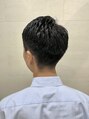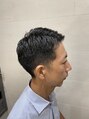 肌が白く透けない程度に刈り上げ、上は短くカットしコンパクトに収まるスタイル。セットも時短できます!