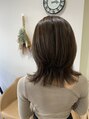 今流行りのミディアムレングスのソフトウルフです。肩につく長さにしておけば自然とハネるので楽ですよ!カラーはイルミナカラーを使った透明感のあるベージュが合います♪もちろん白髪染めの方も出来るので是非ご相談ください!
