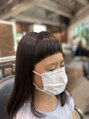 肩下のワンレングススタイル、前髪はオススメのぱっつんワイドバング。顔まわりスッキリ+可愛らしさアップです!