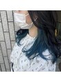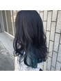 インナーカラーをブルーに◎表面はダークカラーでインナーカラーが目立つ様に♪個性的で可愛いスタイルです!