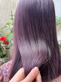 ブリーチ履歴のあるお客様。青みバイオレットをオンカラー。傷ませないよう、縮毛矯正をかけたので艶髪に仕上がりました。