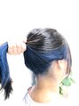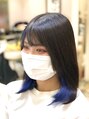 インナーをクールなブルーカラーに。全体を清楚にまとめてみました♪光が当たるとさらに可愛くなります!実は前髪にハイライトを入れており、可愛いワンポイントアクセントになっています。