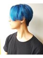 根元はネイビーで濃い目にして、毛先はブルーをのせてます。ブリーチ必須です。