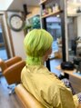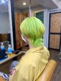 目が覚めるようなネオンカラーのライトグリーン!カットもメリハリのあるウルフマッシュに仕上げてるので個性派の中でも一味違うオシャレに♪