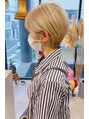 ○頭の形をキレイに見せる。○ショートボブ○ブリーチを使った透明感のあるカラー○白っぽくなりすぎないミルクティーベージュ○ラフで柔らかい質感。
