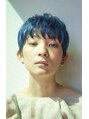 カットはベリーショートスタイル。前髪は長めに設定して大人っぽさと女性らしさを。カラーは一度ケアブリーチ後、ネイビーブルーをオンカラー。[薬院/警固][ショートヘア][前髪カット][ハイトーンカラー][ケアブリーチ][トリートメント]