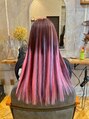 地毛を赤みの強いパープルにカラーし、ベースのエクステを少しグラデーションになるようにつけています。ハイライトにピンクとペールパープルを多めに入れています。