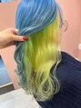 - ロングヘア/インナーカラー/ライムグリーン/水色/寒色インナー