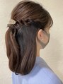 トップはカチッとしすぎないようほどよくひきだし、サイドはねじってワンポイント。ダウン部分はストレートのおしとやかハーフアップです。