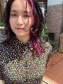 フェイスフレーミングカラーで鮮やかなパープルに。顔まわりだけレイヤーを入れウルフっぽく。