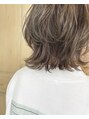 透明感たっぷりのカーキアッシュカラー。全体に細かくたくさんハイライトが入っているので、カーキアッシュの色がしっかり入って、立体感もプラスして表現されています!!しっかり段の入っているウルフスタイルにはハイライトカラーがピッタリです♪
