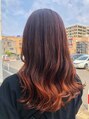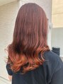 根本は濃いめのオレンジブラウンに、ブリーチをした毛先にオレンジカラーのグラデーションなら、派手すぎずに色味を楽しめます♪