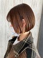 【気に入って頂いたスタイルは、ブックマークをしてご提示ください】アゴラインの前下がりボブ。丸みシルエットのボブに、ベージュブラウンが重く見えがちな硬い髪も柔らかく見えます。幅広い年齢のお客様にご来店して頂いてます