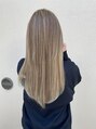 夏にピッタリの柔らかさと透明感を出すために極細ハイライトをきかせた【ミルフィーユカラー】です。ストレートでも巻いてもまたアレンジ等どんなスタイルでも似合います。潤いのある質感なのでパサついて見えやすい夏に自信をもってオススメをいたします。