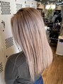 全体ブリーチした後入れてます。色落ちも楽しみなカラー☆ブロンドベージュ☆根元を暗めにする事で陰影をつけて立体感のあるスタイルになります◎光の角度によって見え方が変わります♪透明感がGood◎高明度カラーのためブリーチ2~3回必要です☆【rili横浜】
