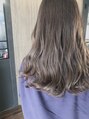 重ためのカットラインがポイントのロングヘアは、柔らかなカラーで可愛さアップです◎色はグレージュです!