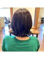 大人カワイイ顎ライン切りっぱなしボブです。ギリギリ結べる長さで楽ちんstyle。