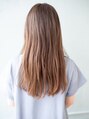 毛先に重さを残したロングスタイル。バングは眉のラインで切り揃えてややパッツンぎみに。強めに巻けば眉上バングになる2WAYになっています。全体的に重ためのスタイルですが、トップと顔周りに少しだけレイヤーをいれているます!