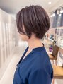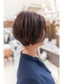 コンパクトで柔らかな雰囲気のくすみカラーショートボブスタイル。毛先のエアリーなタッチと曲線が女性らしさを感じさせます。ヘアスタイルの雰囲気はフォルムとお顔周りのテイストで変化します。お気軽にご相談ください。