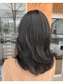 アンダーが9トーンくらいの髪の毛を5トーンのディムグレーに!室内では黒ですが太陽光を当てるとさりげなく出てくるまっくろではない透明感が楽しめます。